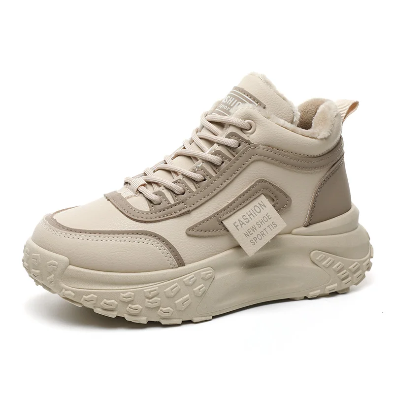 YB51 New Cashmere Winter New Korean Version of High-top Warm Pu Leather Sports Shoes Students Cotton Shoes Female